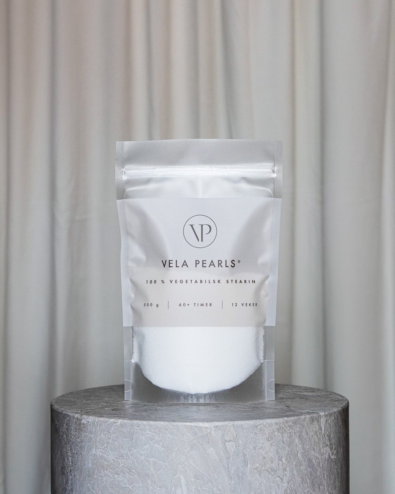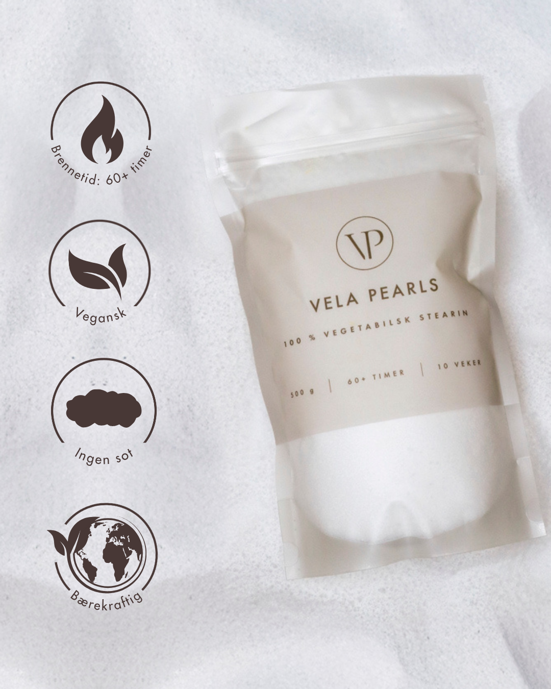 Vela Pearls består av 100% vegetabilsk voks. Helt fri for parafin, palmeolje og soya.